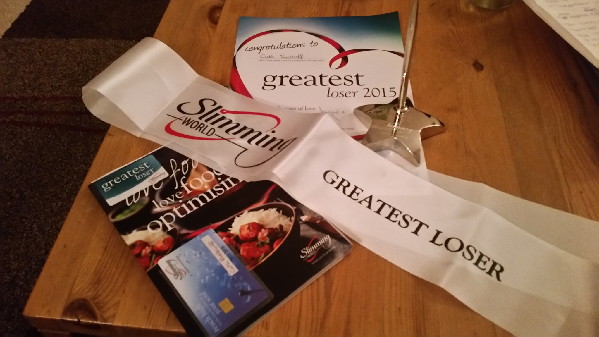 Then, delighted at Slimming World last night with a 3 pounds loss – especially after I cried last week at an unexpected gain – and being our group’s Greatest Loser for 2015!